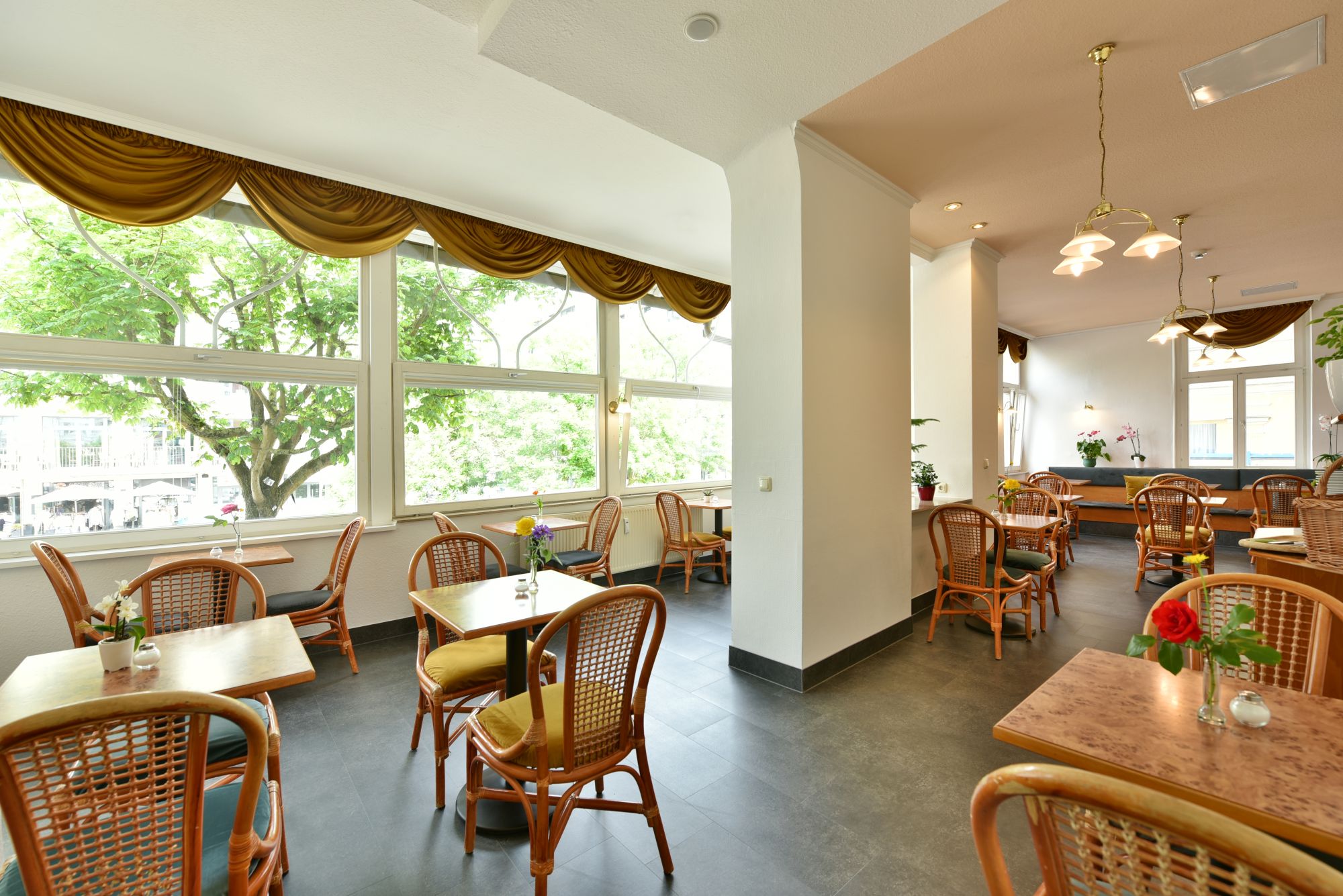 Bei Sonnenwetter können Sie auch die zwei Außenplätze vor dem Hotel nutzen.
